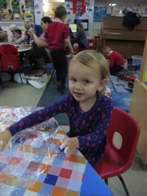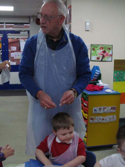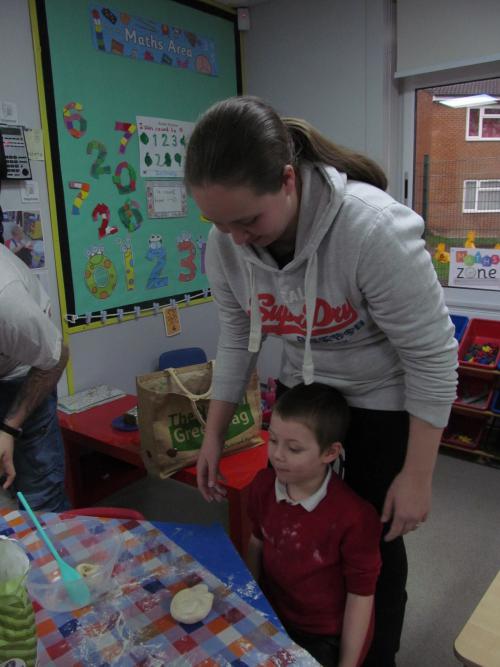 We had an exciting workshop with parents/ grandparents and children from red, green and rainbow classes. We have just started our Scirnce exploration this term. We found out what happened to things when we changed them. We made bread, butter and volcanoes.Everyone had great fun and made some exciting things. Many people took some ideas to try at home and we look forward to seeing what happened as they discovered new things.